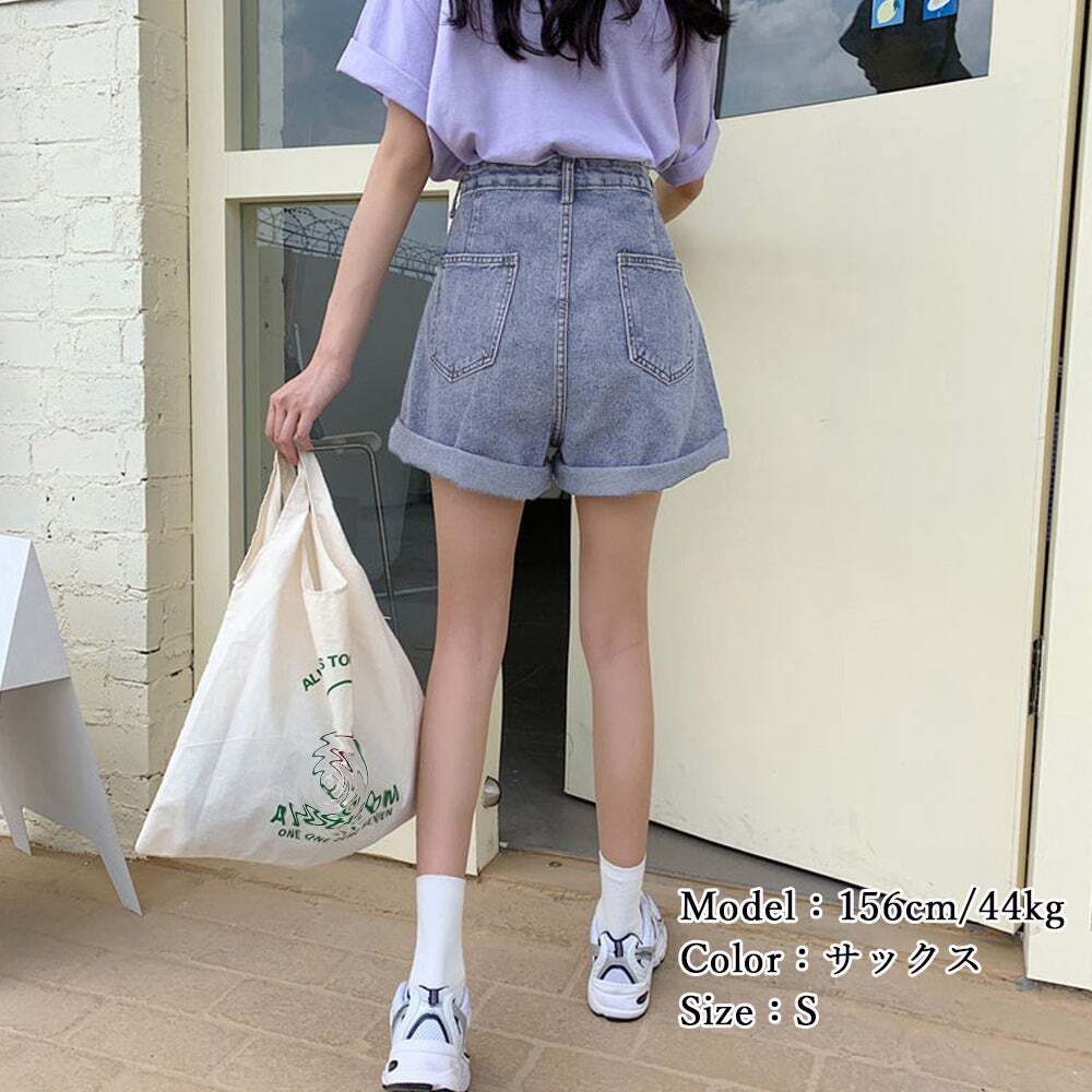 【日本倉庫即納】 ロールアップ デニムショートパンツ 美脚