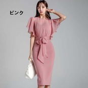 セレブ感溢れるデザインでシフォン素材を使用したひざ丈ワンピースです。