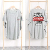 ゆったり ラウンドネック ロゴTシャツ レディース 無地カットソー プルオーバー 体型カバー 着やせチュニックワンピ韓国