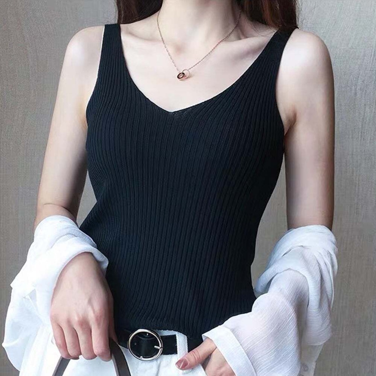 【日本倉庫即納】 タンクトップ Vネック サマーニット ノースリーブ ニットキャミソール
