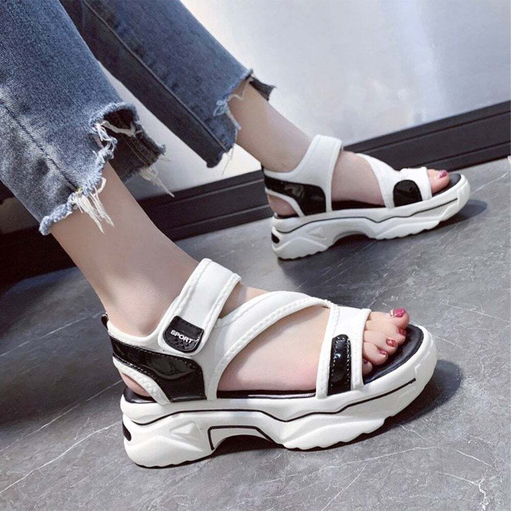 スポサン白黒 韓国 歩きやすいシューズ ボリュームサンダル
