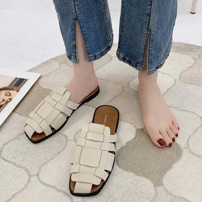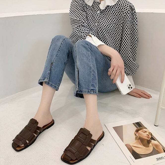 【NEW即納商品】 包頭 半スリッパ ユニークなデザインフラット サンダル シューズ 百掛け
