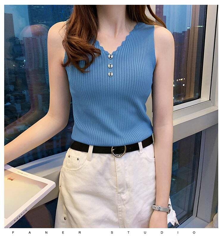 レディース ニット 冷感 タンクトップ ノースリーブ インナー 伸縮性 大人 無地 通勤 Vネック