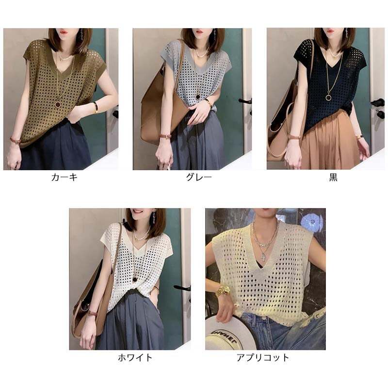 レディース トレンド トップス ブラウス メッシュ 重ね着 フレンチスリーブ シースルー ニット