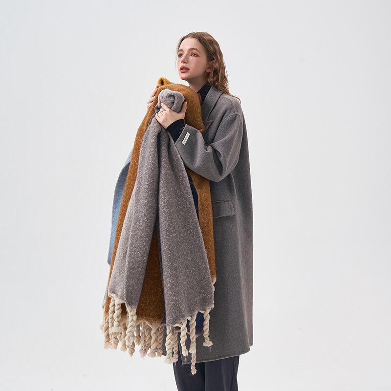 ★5色★ レディースマフラー 37*205cm ダブルカラーショール 秋冬 韓国デイリーファッション